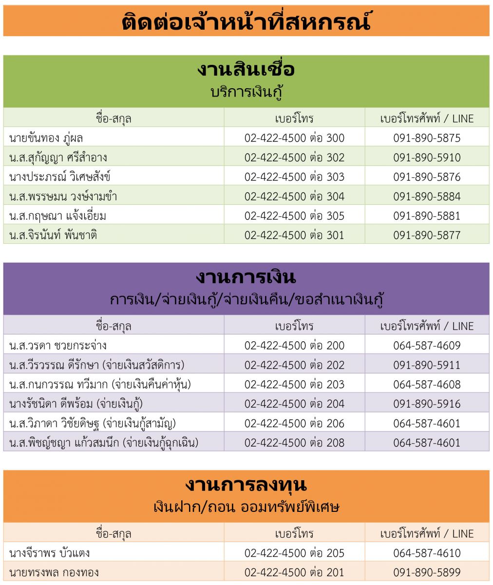 ติดต่อเจ้าหน้าที่สหกรณ์