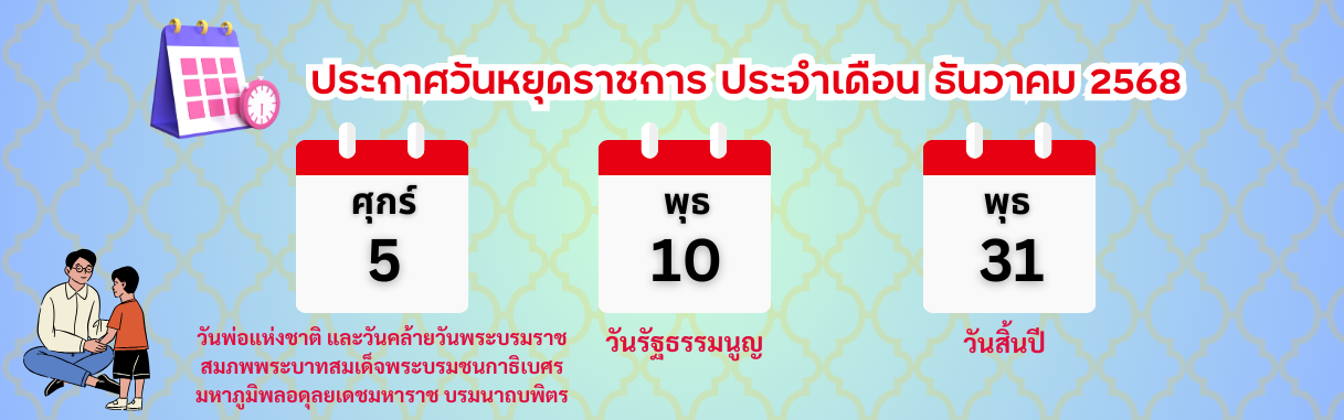 แจ้งวันหยุดทำการ ประจำเดือนธันวาคม 2568
