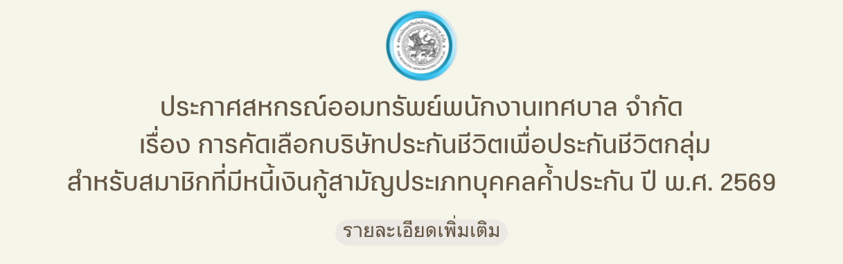 ประกาศ ...ตัวแทนเทศบาลและสมาชิกนอกสังกัด (สมาชิกที่ไม่ได้สังกัดเทศบาล)..ดาวน์โหลดรายการเรียกเก็บเงินได้รายเดือนในวันที่ 11 ของทุกเดือน ...ขยายวงเงินกู้เพื่อเหตุฉุกเฉิน 20 งวดและเงินกู้เพื่อเหตุฉุกเฉิน ATM เป็นไม่เกิน 5 เท่าของเงินเดือน โดยยื่นเอกสารคำขอกู้ฉุกเฉินเข้ามาใหม่ ...ยายเพดานวงเงินกู้สามัญ สหกรณ์ได้ขยายเพดานวงเงินกู้สามัญ จากไม่เกิน 1,500,000 บาท เป็นไม่เกิน 2,000,000 บาท