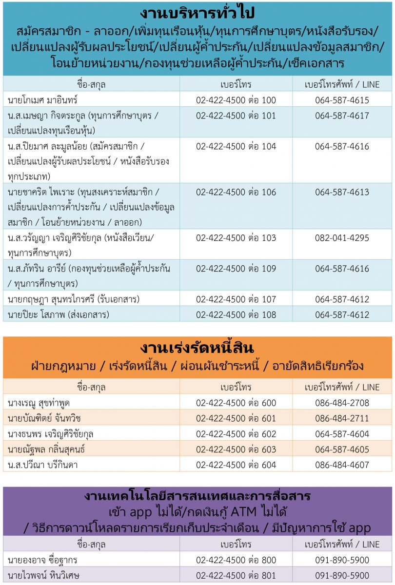 ติดต่อเจ้าหน้าที่สหกรณ์